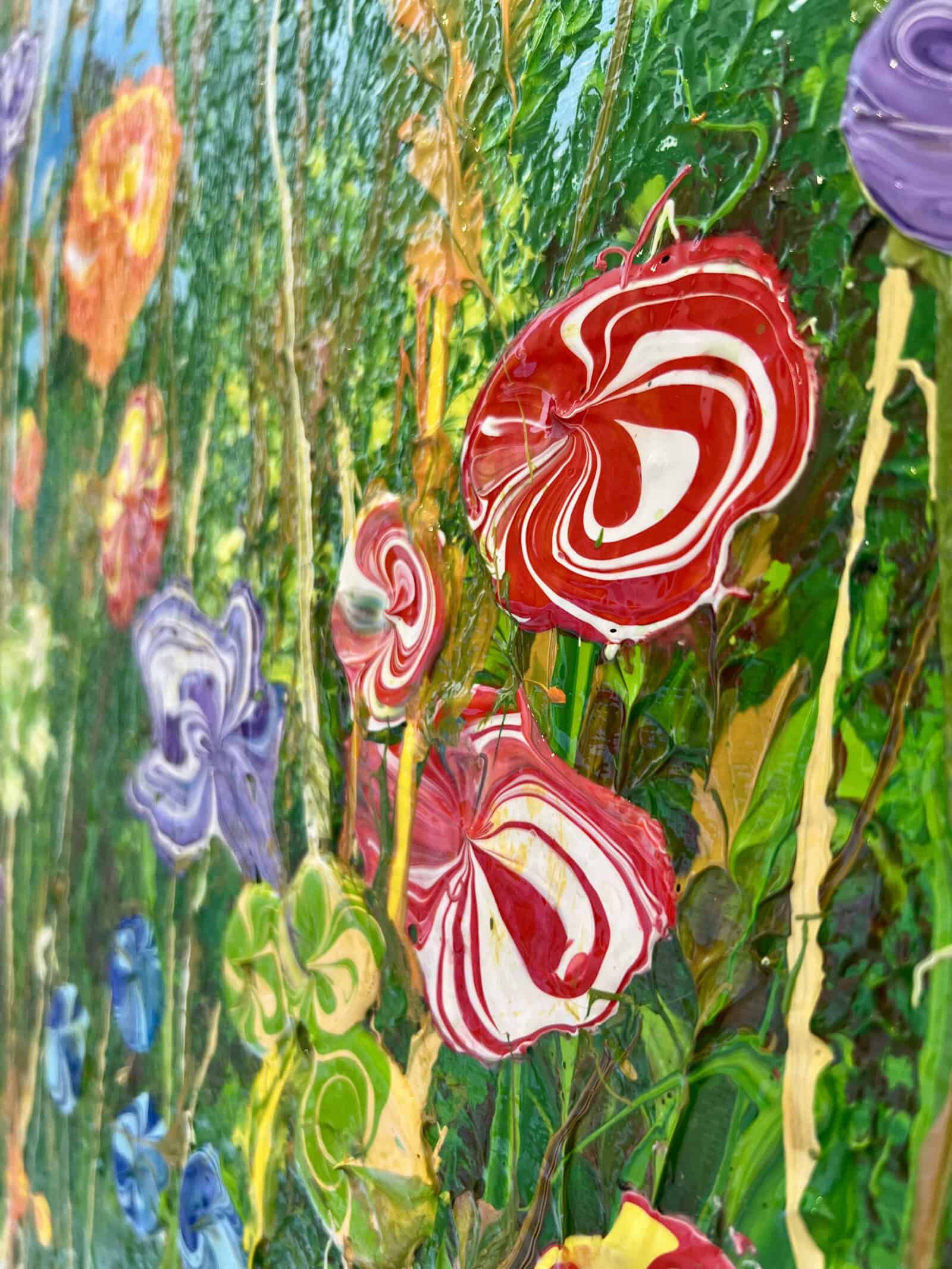 Bright and generous, Breath of Spring immerses the viewer in a meadow alive with orange, purple, red, and pink blossoms. Against a clear blue sky, the flowers rise tall and free, echoing the first rush of warm air after winter. It’s a painting that radiates renewal, vibrancy, and the uplifting energy of springtime.